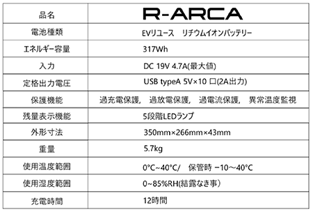 信頼性の高い国産EVのバッテリーをアップサイクルした防災用バッテリーです。